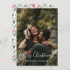 Placa de Feriado de Sobreposição de Script de Natal para Foto Mínima Moderna 1. O verso da carta tem uma aquarela festiva com bagas vermelhas e verde. Fácil de personalizar com seus nomes e fotos favoritas.