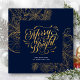 Cartão De Festividades Script Dourado Floral de Tocha Azul de Marinho Mod