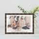 Xadrez de Buffalo Moderno, Roteiro Elegante JOY Simple Holiday Card. Envie cartões de natal personalizáveis e personalizados a amigos, colegas e familiares em cartões de estilo simples, chic, elegantes e modernos de design fotofestivo, minimalista natural! Uma bela caligrafia de "alegria" enquadra sua foto na frente. Abaixo, a foto apresenta sua mensagem de saudação personalizada do nome da sua família na tipografia moderna. Inverso para revelar um belo fundo de textura de xadrez de búfalo castanho escuro.