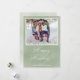 Este design apresenta uma saudação Feliz Feriados com espaço para uma foto, mostrando um elegante fundo de aquarela verde. Acentuado com a tipografia da escrita e a caligrafia graciosa, este simples layout minimalista cria um cartão com fotos eterno e moderno de férias perfeito para compartilhar desejos sazonais quentes.