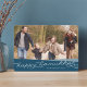 Compartilhe saudações a Chanucá com amigos e familiares com nosso elegante e moderno cartão com fotos Chanucá, apresentando sua foto favorita com bandas sobrepostas de azul marinho profundo e "Feliz Chanucá" em tipografia moderna, escrita à mão. Personalize com seu nome de família ou saudação personalizada.