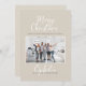 Um guião natural mínimo moderno, boho beige e foto preta e o seu logotipo cartão de visita de Natal.