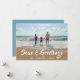 Mande saudações festivas da praia com este cartão de férias do Mar e Saudações. Sua foto favorita de suas férias na praia tem uma cobertura de texto branco de Seas & Saudações e seu nome de família.