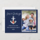 Cartão De Festividades Seas e Saudações Poinsettia Anchor Foto Azul
