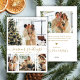 Cartão de Natal de Colagem Fotográfica do Script 4, de Saudações Douradas e Brancas Modernas. Esta placa de Natal minimalista apresenta uma colagem de 4 fotos na frente e uma foto extra na parte de trás. As saudações da "temporada" são elegantemente escritas à mão em caligrafia dourada, num fundo branco limpo, oferecendo um toque chic e moderno à sua mensagem de feriado. O verso inclui um modelo de saudação personalizável com um motivo de rabisca cardíaco e espaço para uma foto adicional. Perfeito por compartilhar alegria festiva com familiares e amigos, esse cartão personalizado é a maneira ideal de celebrar o feriado no estilo.
