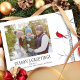 Simples cardeal vermelho sentado em uma pássaro branco de inverno na silenciosa solidão do inverno. Um belo Cartões de foto de Natal Moderno. Esta design retrata a beleza de uma ave de inverno em uma floresta florestal. Deseje a você e a sua um Feliz Feriado com este design moderno. Esta design apresenta o cardeal vermelho de Natal, foto da família 2 dois, cardeal vermelho minimalista elegante, carta de Natal de boas-vindas da estação, tipografia simples moderna, árvore de pássaros vermelhos da natureza, galho da árvore de pássaros de inverno, carta de fotos de Natal, floresta florestal de floresta botânica, árvore de pássaros rústicos