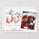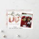 Este doce cartão de Natal é feito em tons suaves de maxilar e rosa. Há um galho de pinheiros com quatro diferentes meias de Natal penduradas nele e estrelas cintilantes acima. A tipografia diz "seja feliz e brilhante". Adicione a sua foto favorita com o modelo fácil de usar fornecido e adicione o seu nome de família e a sua conclusão! O lado inverso tem uma colagem de todo tipo de palavras de Natal e dizeres, como "Deixem-na nevar", "Deck the Halls", "Ho Ho", "Silent Night", "Holly Jolly" e muito mais. Eles são feitos em tons de massa e sábio verde.