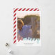 Sejam cartões com fotos de Feliz com as palavras "ser feliz", em caracteres brancos vermelhos e azuis (com texto recortado, em fundo branco), e uma foto-modelo com garotinho brincando na praia. A parte de trás deste cartão de Natal Seja Feliz apresenta um simples design striped, com um padrão vermelho e branco de faixas diagonais. Faça facilmente cartões de Natal personalizados para a família, com seu próprio texto e fotos favoritas. As fotos de exemplo usadas são apenas para fins de ilustração. AS FOTOS NÃO ESTÃO INCLUÍDAS.