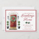 Diga a sua família e amigos que você tem um novo lar para as férias com nossas belas e elegantes épocas saudando o novo cartão de anúncio da casa. Nossa design apresenta nossa própria porta vermelha, pintada a água, com uma coroa festiva de Natal. Destacado com toques de ouro no slot da caixa de correio, alça da porta e prato da porta. Luzes escuras modernas de parede exterior e uma porta de boas-vindas de uma toca completa esta nova e encantadora design de Natal. Personalize com seu novo número de endereço residencial na porta frontal no meio da coroa de Natal e adicione seu nome e novas informações de endereço/contato. O verso apresenta um padrão moderno de riscas vermelhas e brancas. Todas as ilustrações são obras de arte originais pintadas manualmente pela Moodthology.