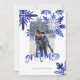Cartão festivo moderno, arrojado e abstrato, com os nossos flocos de neve de tinta gravada com tinta gravata, pintados à mão. O ousado padrão de floco de neve cria um olhar moderno e na moda. "Saudações" é exibido em uma tipografia moderna de escrita azul-indigo. Personalize com uma foto, assinatura familiar e ano. O verso apresenta um fundo de índio com um padrão de coloração branca. Trabalho de arte por Moodthology Papery.