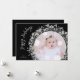 Estrelas prateadas cintilantes, círculos e pontos em preto à volta da sua foto favorita com os seus nomes e Felizes Feriados saudando em letra chic, uma bela maneira de enviar alegria de férias. **USE UMA FOTO HORIZONTAL para obter melhores resultados ou recorte sua foto em um quadrado antes de carregar. Mais itens na nossa coleção. Selecione Matte para o papel mais pesado e alta definição para melhor qualidade de impressão.