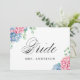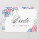 Sinal de casamento de noiva personalizável, com cor d'água rosa e hidrangeas azuis e verde. Personalize este sinal de noiva floral adicionando nomes ou outros detalhes. Este símbolo de noiva de hidrocoloração é perfeito para primavera e casamentos no inverno.