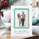 O cartão com fotos de feriado moderno apresenta a sua foto vertical favorita emoldurada por elementos geométricos em tons verdes brilhantes. "Be Joyful" aparece abaixo em uma combinação de script manuscrito e letra de bloco. Personalize com seus nomes familiares e o ano em azul-da-meia-noite silencioso para uma declaração chic. Cartões invertidos a faixas verdes e brancas na diagonal.