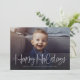 Envie cartões de natal divertidos com este cartão de feriado de uma foto. Apresentando um tipo lúdico que diz "feriados felizes" cercado por estrelas, ele também tem espaço para uma mensagem personalizada e um dorso num vermelho festivo manchado de estrelas. Este simples cartão de férias é excelente para famílias, casais e qualquer um que envie aplausos nesta temporada. Também disponível como download de cartão de Natal digital.