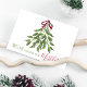 Feliz Mistletoe é um tema botânico e elegante do inverno. Um design artístico, caprichoso e simples com um elemento de natureza fofo e divertido. Deseje a você e a sua um Feliz Natal com este cartão de saudação divertido.