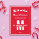 Cartão De Festividades Simples Red White Monograma Nome da Família Natal