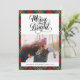 Placa de Feriado Simples de Script de Diversão de Xadrez Negra Negra Negra Moderna. Mande cumprimentos e desejos calorosos de férias para seus entes queridos com este simples, minimalista, fotógrafo fotórico, bonitinho e bonito, com "Feliz e Brilho" na tipografia da na moda. Inverter para revelar um belo fundo vermelho e verde de xadrez do tartan festivo. Desejo a todos um Feliz Natal e Feliz ano novo!