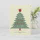 Estilo retrorado de burgundy escura vermelha e caçador de árvores verdes e formas estelares e escrita à mão com o roteiro "Um Natal muito feliz para você", sem foto, um simples cartão de feriado mínimo de tendência de design. Fácil de personalizar com seu nome de família e ano.