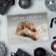 Um Cartão de Férias de Natal de Pet Engraçado com simples tipografia define saudações impiedosas na frente. A parte de trás tem uma saudação de feliz ano novo e 2 fotos com mensagens e nomes pessoais. Clique no botão editar para personalizar este design.