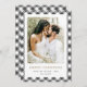 Comemore a temporada de festas com esta foto Cartão Feliz de Natal com um padrão de xadrez de búfalos preto e branco. Personalize facilmente este elegante cartão de feriado fotográfico online.