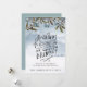 Feliz Natal, sinos de trenó e folhagem contra neve branca e sinos azuis. Personalize o texto com sua própria mensagem.