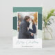 Um cartão de feriado moderno e elegante, em cores suaves, com sua foto favorita vertical ou orientada a retratos, em um fundo de neve de bloco colorido em tons de spruce e verde-caçador. "Feliz Natal" aparece por baixo de um belo roteiro escrito à mão, com seu nome familiar por baixo.