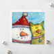 Um boneco de neve e gato balançando para uma foto de feriado nesta placa chata divertida 5x5. Há espaço no verso para escrever uma saudação e eles vêm com envelopes brancos.