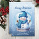 Cartão De Festividades Snowman Snowglobe Blue White Feliz Natal