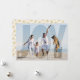 Cartão com fotos de Natal transparente para alegria da sobreposição. O verso inclui um padrão de floco de neve brilhante dourado e uma foto.