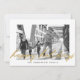 Cartão de foto de férias personalizado com "feliz feriado" em letra manuscrita moderna na frente, design bokeh dourado no verso.