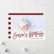cartões com fotos de feriado personalizados com barato simples para personalização. Este design na moda moderno apresenta a tipografia de saudações de Season, gravada em vermelho, sobreposta na sua fotografia de sangria de cheio. Personalize-o com suas fotos, nome da família, ano ou outro texto personalizado. Observe que a folha falsa faz parte da design impressa - as cartas não têm folha metálica real. O lado inverso tem um padrão de fita de folha de alumínio inversa ou use o espaço para fotos e texto adicionais. Use as ferramentas de design para alterar as fontes e cores do texto, adicionar mais fotos e criar uma única design de cartão com fotos de feriado.