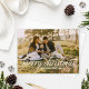 Basta um cartão de saudação de fotos de feriado chic com "Feliz Natal" em um roteiro branco moderno com detalhes de rolagem. Um padrão de feriado moderno, cor prateada, em fundo amarelo/verde cartreuse (a cor pode ser personalizada) agrega interesse ao verso do cartão.