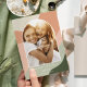 Um design de cartão de feriado chic e elegante com uma foto vertical ou orientada para o retrato de solteiro em um único layout arquivado, enquadrado por formas de faixa orgânica em tons suaves de argila e verde-caçador. Personalize com seu cartões de natal personalizado (mostrado com "Feliz Natal"), seu nome de família e o ano para o toque perfeito para esses cartões com fotos de Natal 2021 inspirados na natureza.