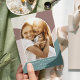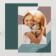 Um design de cartão de feriado chic e elegante com uma foto vertical ou orientada para retratos de solteiro em um único layout arquitetado, formado por formas de listras orgânicas em tons suaves de argila e verde-roxa. Personalize com seu cartões de natal personalizado (mostrado com "Feliz Natal"), seu nome de família e o ano para o toque perfeito para esses cartões com fotos de Natal 2021 inspirados na natureza.