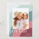 Um design de cartão de feriado chic e elegante com uma foto vertical ou orientada para o retrato de solteiro em um único layout arquivado, formado por formas de faixa orgânica em tons suaves de argila e verde-roxa. "Joyful" aparece por baixo da sua foto em um tipo subestimado, com o ano na dentro da letra "o" na parte superior esquerda, com o nome da sua família na parte inferior direita. Personalize com seu nome de família no canto inferior direito para o toque final perfeito para estes cartões com fotos de Natal 2021 inspirados na natureza.