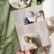 Um elegante e único design de cartão com fotos de feriado com duas fotos horizontais ou paisagísticas alinhadas nos cantos, com "JOY" gravado em letras brancas estreladas. Personalize com seu nome de família e o ano no centro.