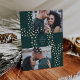 Um elegante e único design de cartão com fotos de feriado com duas fotos horizontais ou orientadas à paisagem, alinhadas nos cantos, com "JOY" sobreposto em letras estreladas em um contrastante fundo verde da floresta escura. Personalize com seu nome de família e o ano no centro.