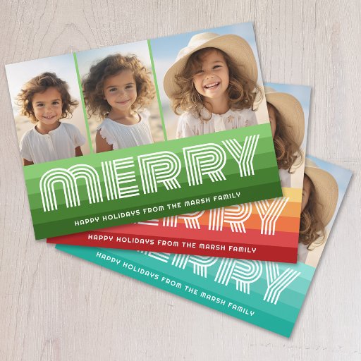 Cartão De Festividades Stripe Retroativa - feliz - 9 Foto verde monocromá