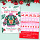 Esta design de Natal de suéter feia apresenta um saltador feio com uma face de rena, sombria e bagas, verde e flocos de neve em uma paleta colorida de vermelho, verde e rosa. Na parte de trás deste cartão está um padrão de malabarismo com muitos motivos de Natal e um espaço para adicionar a sua própria mensagem. Você pode personalizar todos os detalhes. Veja toda a coleção correspondente. Toda a trabalho de arte é ilustrada e protegida por direitos autorais por Kaitlyn Thomas.