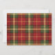 Classic red-green tartan with velvet bow accents and an elegant script on a parchment panel.