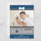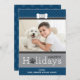 Envie um sorriso nesta temporada de festas com um cartão de saudação de fotos de natal com o tema de um filhote de cachorrinho, completo com sotaques de design de impressão de osso e pata. Design moderno com um fundo com padrão de bolinhas e cor azul marinho e cinza.