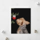 Yorkshire terrier, ou yorkie, é muito tentado pelo Enfeites de natal com aparência de bola de brinquedo, mas tentando ser um bom cão adorador de natal cartão plano de Natal