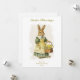 Esta adorável design tem um coelho castanho, estilo vintage, que veste um vestido verde com um ruff ao redor do pescoço e segurando uma cesta de bonito flores amarelas. Você pode personalizá-lo mudando a saudação e também o nome da família e o ano. Uma maneira fofa de enviar uma mensagem Páscoa para a família e os amigos.