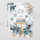Cartão De Festividades Texto personalizado Flor Azul Hanukkah Menorah