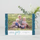 Este cartão de Natal com fotos planas apresenta um quadro fotográfico horizontal acentuado com o cartões de natal "Tidings of Comfort and Joy". O fundo é azul escuro com um padrão de férias de galhos de pinheiros, cones de pinheiros e pererecas de bagas. O texto personalizado, no verso, permite adicionar uma mensagem pessoal.
