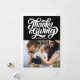 Mande saudações de Ação de Graças para a família e amigos com este cartão personalizável de Ação de Graças. Apresenta uma tipografia de escrita em negrito. Personalize adicionando seus detalhes. Este cartão de Ação de Graças de fotografia está disponível em outros estoques de cartão.