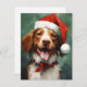 Design de Natal colorida e alegre com um cão britânico vestindo um chapéu de Papai Noel.