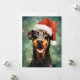 Design de Natal colorida e alegre com um Doberman vestindo um chapéu de Papai Noel.