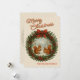 Este cartão de feriado retrô apresenta uma coroa decorada com um clássico arco vermelho, folhas verdes ocas, morangos vermelhos, mirtilos e dois esquilos adoráveis. A sua design, porém rústica, captura lindamente a essência da época de feriados de dezembro e apela àqueles que apreciam ilustrações artísticas. O cartão também oferece opções de personalização, permitindo que você o personalize com o nome da sua empresa, nome da família ou nomes individuais. Além disso, você pode incluir um poema de saudação sazonal personalizado no verso, fazer-o uma escolha criteriosa para espalhar alegria de férias.