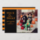 Envie saludos de Halloween a sus familiares o amigos con este lindo modelo de Tarjeta Festiva de Halloween, el modelo cuenta en la parte frontal un foto personalizable asi como la frase "TRICK OR TREAT" con tipografia de Halloween en color naranja, se puede personalizar con el nombre de tu familia.